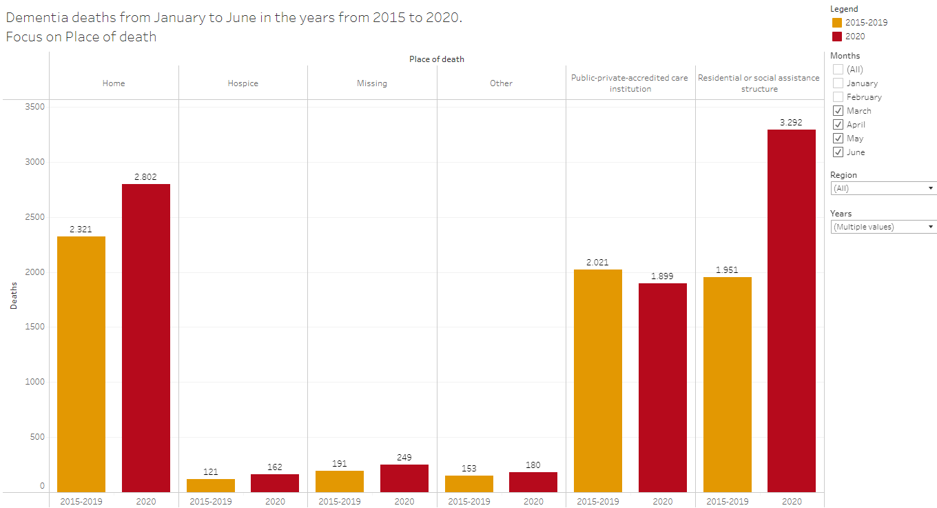 This results an increase of Covid-19 cases in these structure and, as a correlation, in a increase of dementia deaths.