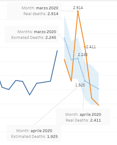 March and April are the months of the first Covid-19 wave and the graph shows an excess of dementia mortality rate in Italy equal to 1155 for these two months.