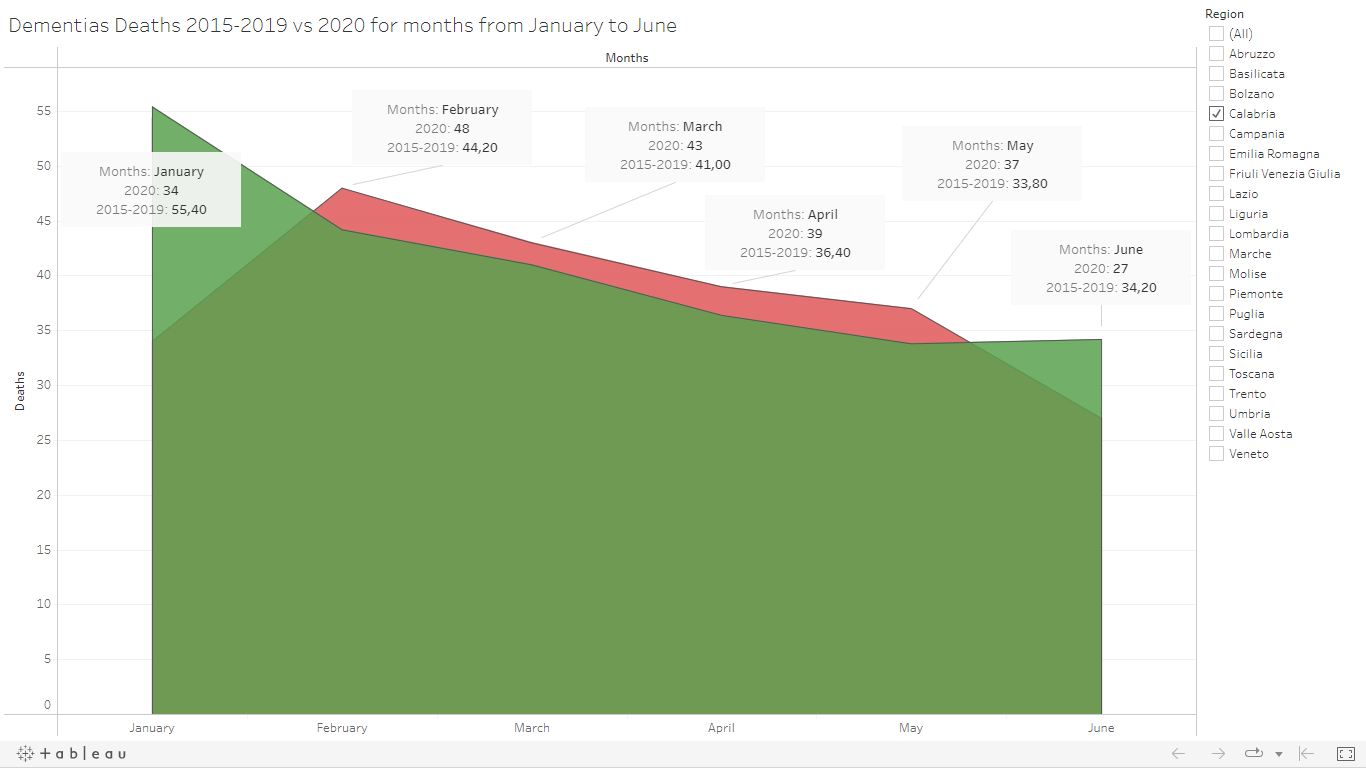The number of Covid-19 cases in the South Italy was lower than in the North Italy during the first wave.Calabria, as well as others regions the southern Italy, shows a dementia mortality trend similar to the past years.